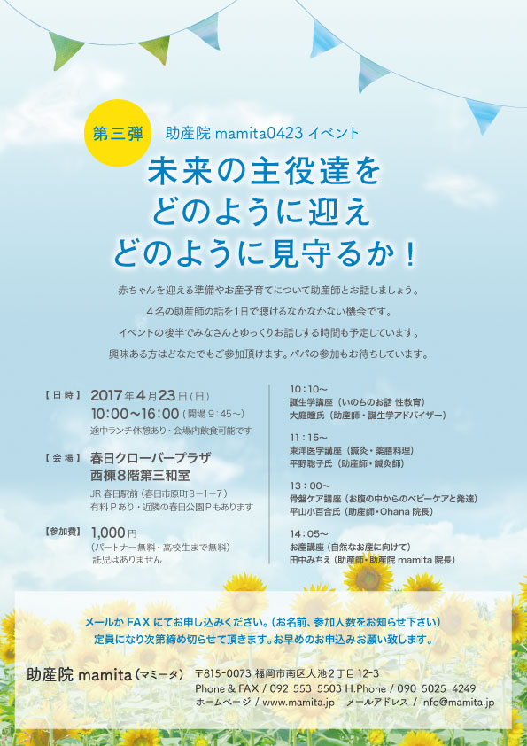 これからもご縁を大切にmamitaを必要として下さる方に寄り添える助産院を目指して参ります。