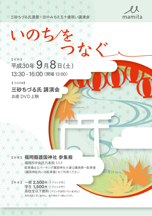 三砂ちづる氏還暦祝いという記念すべき講演会を 皆さまと共に過ごせます事を楽しみにご参加お待ちしております。